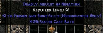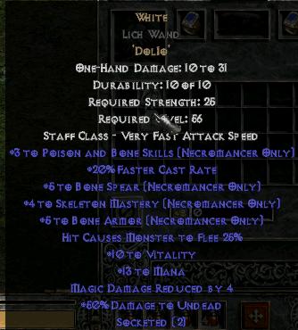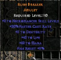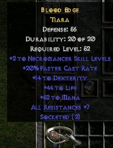Co do progów to chyba wszystko, nie będe opisywał Ias z oczywistych względów. Potrzeby osiągnięcia określonego progu są niezwykle istotne w przypadku Necromanty tyczą się wszystkich trzech progów, dlatego musimy zadbać o kilka istotnych aspektów odnośnie Itemów, ważne by posiadały Fcr/Fhr oraz Dex, reszta pod item setup.