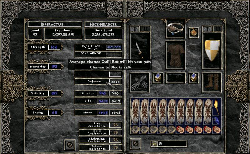 Oczywiście przedstawione powyżej statystyki są dla Necra ubranego naprawdę w klasowe itemy, zrozumiałe jest to, że możecie mieć mniej life, będziecie musieli dać więcej dexa czy na przykład str pod itemy jeśli to będzie konieczne, to są tylko przykładowe screeny!