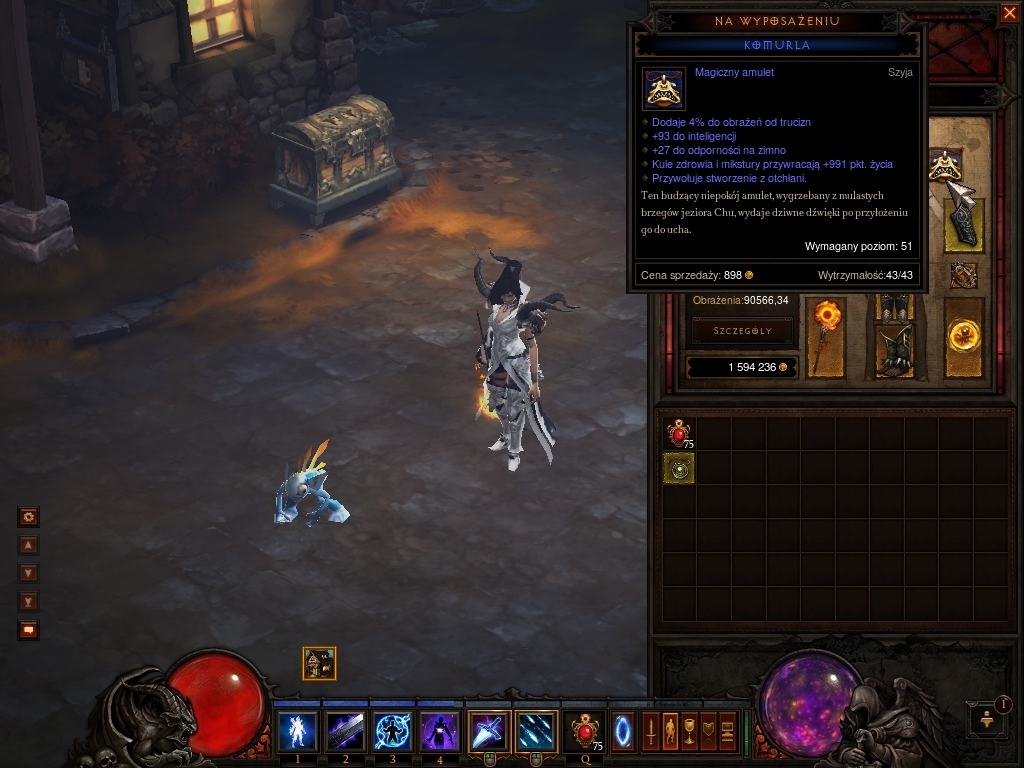 Twórcy gry widać musieli dodać coś do D3 z WoW'a bo by nie wytrzymali ;) Stwór to tylko element graficzny i nic on nie robi poza bieganiem razem z postacią. Dodatkowo Amulet jako item jest strasznie crapny ;) Najważniejsze w nim jest to, że daje nam towarzysza. Niestety jest jeden minus (choć w sumie dla niektórych ten Amulet może być minusem) i jest to znikanie stworka. Co jakiś czas znika on gdzieś by za chwilę znów się pojawić. Coś jakby był zbugowany bo przecież mógłby biegać cały czas z nami skoro mamy Amulet na sobie.