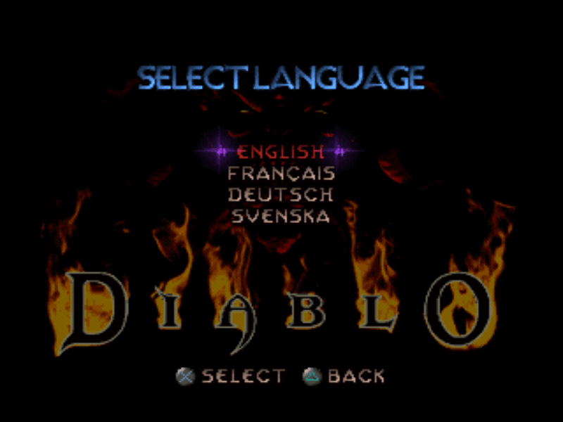 Diablo dla PSX mamy do dyspozycji aż cztery wersje językowe;