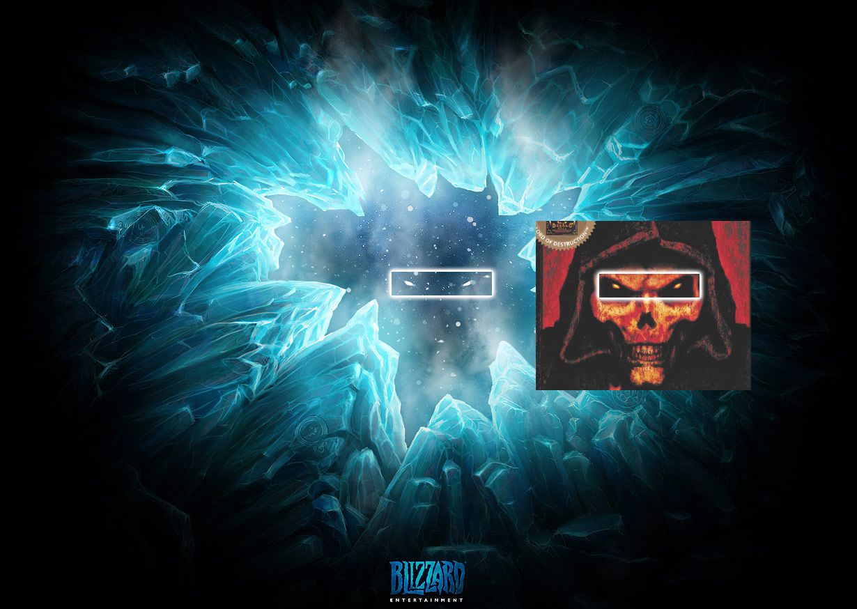 Tak więc na obrazku znajdują się 3 znaki. Każdy z nich odnosi się do innej gry. Odpowiednio w kolejności ukazywania się znaków: Wrath of The Lich King (WoW), Diablo 2, Starcraft 2.