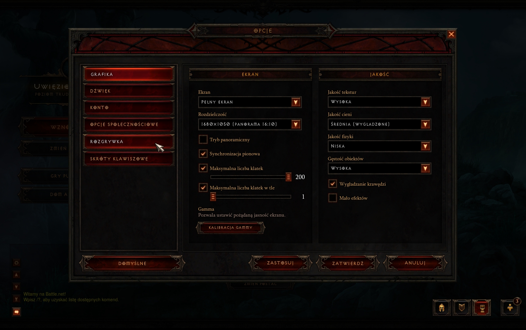 4. Wybrać "Opcje". Przejdziemy tym samym do bardziej szczegółowego menu ustawień, gdzie z listy po lewej stronie wybieramy Rozgrywka: