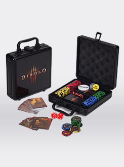 Pamiętaj jednak, iż nie można cały czas walczyć z demonami - zawsze warto choć na chwilę, wraz z innymi Herosami Sanktuarium usiąść przy kubku (o którym wyżej) z kawą lub herbatą, a może jeszcze z czymś mocniejszym i zabawić się w hazardzistę. Umożliwi Ci to zestaw do gry w pokera, na który składa się gustowna walizka z logiem gry, a wewnątrz dwie talie kart ozdobionych motywami z Diablo, cztery zestawy żetonów, oraz kości do gry.