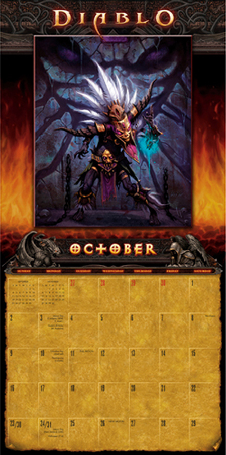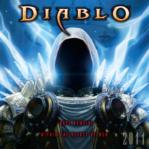 Kalendarz posiada wiele wspaniałych artworków, wliczając w to obrazki przedstawiające Decarda Caina i Leah, Barbariana, Witch Doctora, Monka, Wizarda. Co ciekawe znajdziemy tam również 2 całkiem nowe prace przedstawiające Barbariana w stroju św. Mikołaja i Tyraela z błyszczącymi skrzydłami. Okładka przedstawia znany nam wizerunek Tyraela, ale nie on przyciąga uwagę, lecz tekst znajdujący się u dołu: "Nadzieja pozostaje w sercach ludzi". Czyżby zdradzał nam on cząstkę fabuły? Czy to będzie wypowiedź Tyraela? A może jest to tylko zdanie, które odzwierciedla tematykę trzeciej części gry...