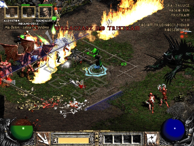 Jeszcze przed resem znajomy do mnie napisal zebym wszedl do niego na gre bo zabijaja Mefa Baala i Diablo w Tristram... Stwierdzilem ze i tak nie zdobede pochodni ale zawsze sobie popatrze :P Wszedłem na gre wchodze w tp a tam wszyscy trzej bracia i panowe czelusci przy tp :/ przez dobre 20 minut wchodzilismy zeby ich odciagnac od tp ale na nic... tylko kase stracilem... tzw. tak myslalem ale rozlaczylo polaczenie :) i znajomy znow otwozyl i tym razem zabilismy ich :)