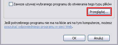 W takiej sytuacji trzeba znaleźć edytor rejestru i zastąpić stary program, więc szukamy ten plik klikamy na niego PPM ( Prawym Przyciskiem Myszy ) i wchodzimy na "Otwórz za pomocą" naciskając tam "Wybierz program...". Otworzy nam się okienko przez które będziemy szukać naszego edytora rejestru, klikamy "Przeglądaj..." tak jak na obrazku: