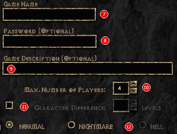 Dalej wybieramy maksymalną liczbę graczy w grze (10) (do ośmiu), maksymalną różnice poziomów pomiędzy graczami (11) i poziom trudności, na którym będzie się odbywała rozgrywka (12). Oczywiście możemy wybrać tylko te poziomy, do których mamy daną postacią dostęp.