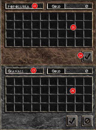 Drugi gracz pokazuje swoją ofertę w oknie u góry (25) a my w naszym (26). Znaczkiem na samym dole naszego okna możemy zgodzić się na ofertę. Jeżeli osoba z którą handlujemy zgodzi się, przedmioty zostaną wymienione.