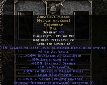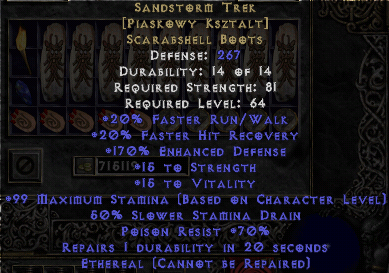 Ubieramy: Storm, Shako(cham), Eni, Hoto, Mages, Arach, Soj+Bk, Sands, Craft Amu, 4x fhr sks
