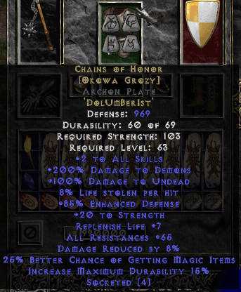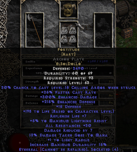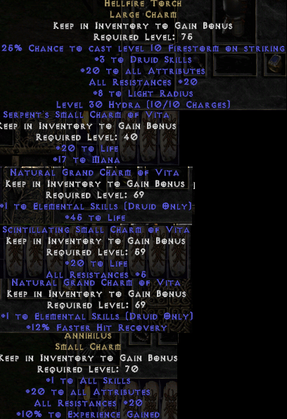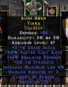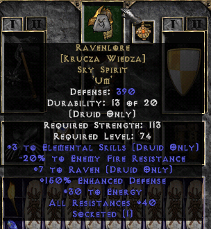 Tak to się mniej więcej przedstawia. Opis ten uświadamia nam, że z Druida można zrobić postrach na duelach i mordercę potworów. Mały def – jak każdy mag, nieciekawie przedstawiają się progi fcr i fhr. No w końcu Blizzard musiał pogorszyć statsy bo Eles byłby za dobry, ale dla nas to nie kłopot i z tym se poradzimy.