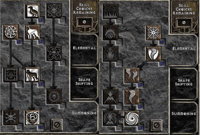 Ele Druid… kojarzy się z wątłym rudzielcem stojącym w środku huraganu, obwarowanym zwierzakami i puszczającymi tornada… na pozór niegroźny, ale odpowiednio wyposażony i prowadzony poradzi sobie z KAŻDYM przeciwnikiem. Drzewko umiejętności elementarnych (ze strony zimna) jest bardzo praktyczne. Prawie wszystkie umiejętności będą używane, znajdujemy tu czar ofensywny (tornado), defensywny (zbroja cyklonu) i spowalniaczo/dobijacz (huragan). Dodatkowo czary wspomagające (zoo) jak Oak (kosmiczny kop do life), wilki (tłum), misio (żywa tarcza). Zaleta tornada jest to, że jest nie do zablokowania oraz zadaje obrażenia fizyczne. Na tornado działają jedynie uniki amazonki oraz szponowy blok zabójczyni (only c/c).