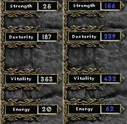 Statystyki to są takie małe punkciki, których mamy 5 za każdy poziom doświadczenia +15 z questu nr 4 w akcie trzecim (po 5 na każdy poziom trudności). W sumie tego syfu jest 505 i postaramy się je poprawnie rozdać.