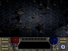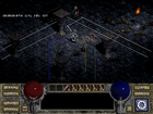 Aby uciec z niewygodnej sytuacji np. aby uciec z górnych partii areny gdzie pomiędzy nami a łukiem nie stoi żadna kolumna trzeba umieć zejść. Schodzenie w dół jest uprzywilejowaną formą ruchu w grze Diablo1. Po pierwsze, nawet gdy łuk stoi centralnie pod nami, schodząc w dół wyłapanie strzały na klatę nie przeszkadza naszemu ruchowi, możemy dalej poruszać się w dół. Czasem lepiej przyjąć jedną lub dwie strzały i uciec z koszmarnego położenia niż prędzej czy później dać się kompletnie ustrzelić. Gdy łuk ostrzeliwuje nas z góry oczywiście wszystko działa tak samo ale wtedy jeszcze inaczej się da uciec w dół. Jak to zrobić i od czego to zależy pokażę na screenach.