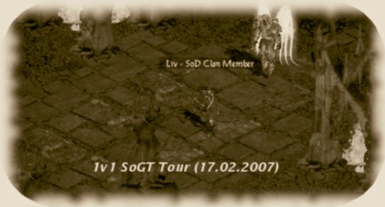 W sobotę, 17.02, o godz. 22:00, rozpoczęły się ostatnie rozgrywki turnieju Diablo 2 , SoGT Tour Second Edition, były to rozgrywki 1v1. Przebiegły one bez większych kłopotów, i zakończyły się przed 4 nad ranem. Zapisało się 65 graczy. Okazało się jednak, że wielu z nich nie pojawiło się i w kilku grupach było sporo walk oddanych walkowerem. Prawdziwa walka zaczęła się w etapie po grupowym czyli w tzw. playoffach. Zwycięzcą turnieju został Liv z klanu SoD, który w finale stoczył walkę z Makim z klanu SoGT. Wynik 5-4, mówi sam za siebie, iż walka była zacięta.