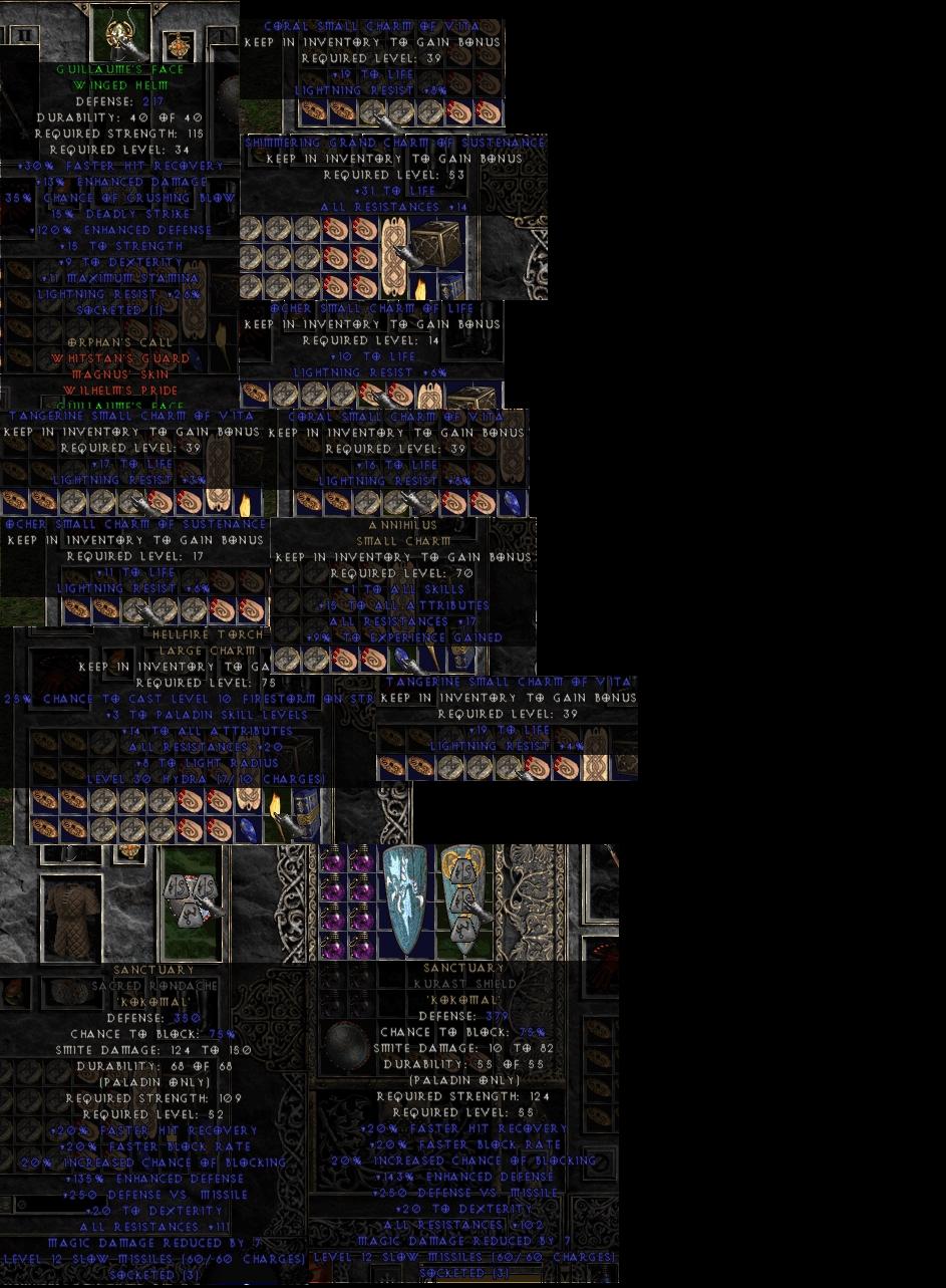 1. Na głowę ofc twarz Wilhelma, co w niego wsadzicie zalezy od was, ja mam 15ias jool, ponieważ sprawia on ze przy ubijaniu duriela jego hf nie obniża tak nisko progu ias, ale można również dać shael, ort lub um.