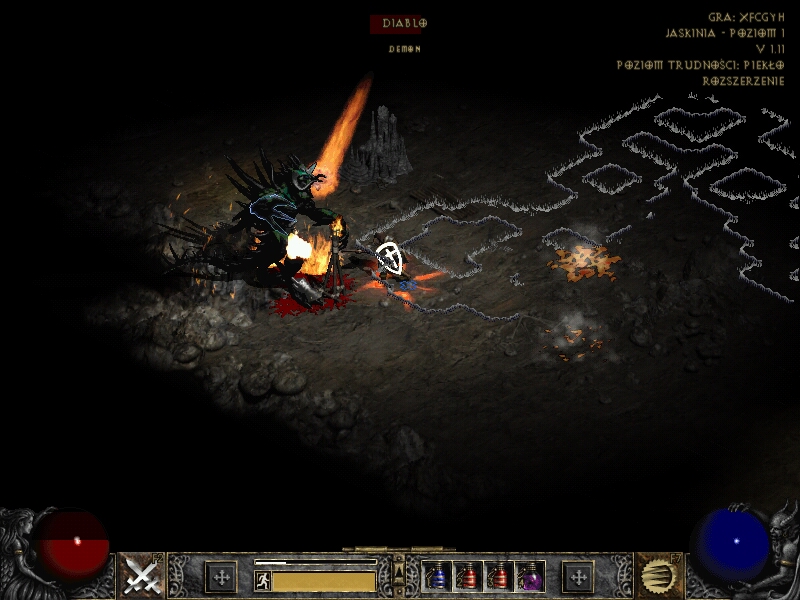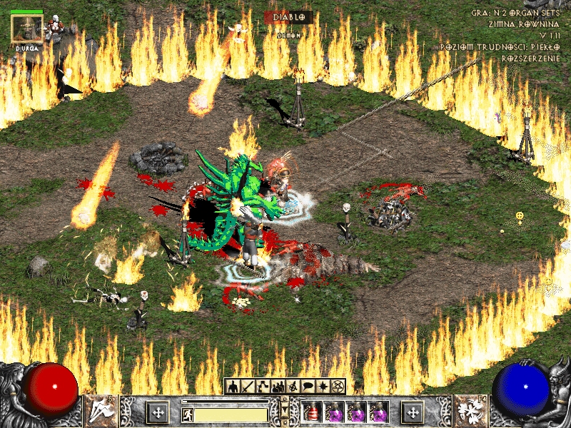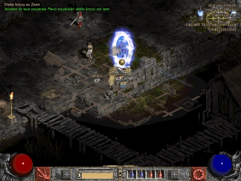 Po dwóch miesiącach prawie nie grania w Diablo postanowiłem podszkolić mojego "zapalonego" pala i stworzyłem grę. Jeszcze się dobrze nie rozejrzałem po mieście, a już widzę niespotkany dotąd napis o zstąpieniu Diablo. Trochę się zdziwiłem i nie wiedziałem gdzie by go znaleść, ale jakieś przeczucie teleportowało mnie na kamienne pola i był to strzał w 10!