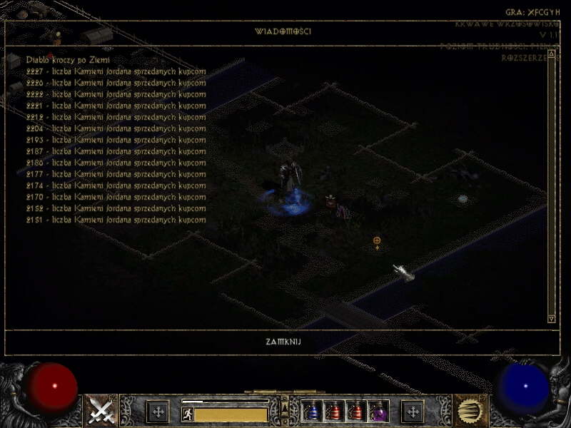 Nagle zaczął pojawiać się napis "Sprzedano 545 Kamieni jordana kupcom" a za chwile "sprzedano 560 kamieni jordana kupcom" i pojawił się komunikat " Diablo kroczy po Ziemi" i jednocześnie zatrzęsła się ziemia na mojej grze.