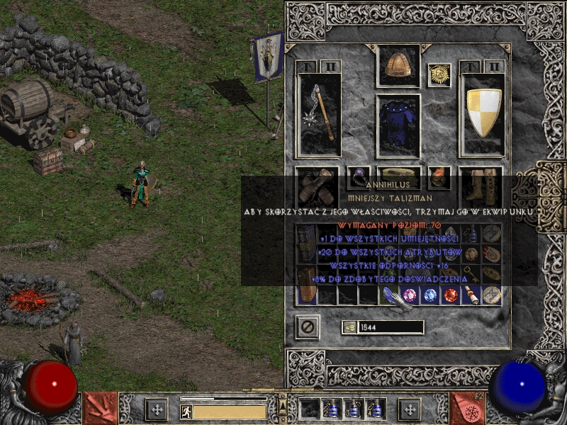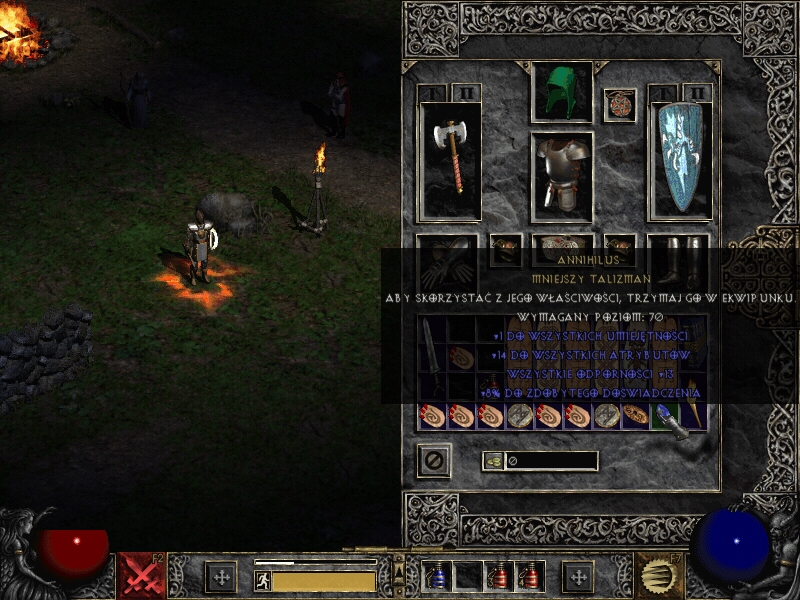 Dnia 26.12.2005 po 23 wszedłem do gry "o gul n ist mal", zdziwiło mnie, że tak dużo osób tam siedziało, gdyż gul tak drogo nie chodzi. Patrzę, a tam napis "diablo kroczy po ziemi". Przypomniałem sobie gdzie można go znaleĄć i szybko wybrałem kamienne pola. Nie myliłem się, miał on około 1/2 życia gdy się pojawiłem. Mało osób wiedziało gdzie go szukać, więc biliśmy go w trójkę na osiem osób w grze. Udało się !! nie dość, że zginął to ja byłem tym szczęściarzem, który wziął annihilusa, jednym słowem CZYSTY FART!!!!