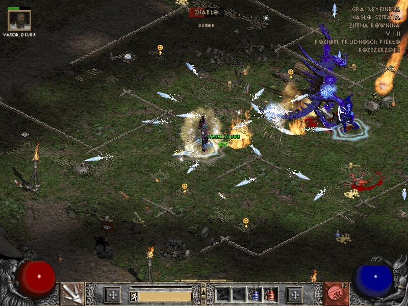 No więc to w ogóle niezwykły dzień na d2x, najpierw znalazłem aracha 116% , póĄniej szukałem sobie kluczy, po zabiciu hrabiny stwierdziłem, że albo coraz gorzej gram albo coraz więcej potworów , przypomniał mi się artykuł jak ktoś pisał o tym, że robił key runy i nagle WE i tak siedzę znudzony, bo i z andy nic nie wypadło, stwierdziłem, że z tej gry nic nie będzie, że założę nową. Nagle pisze, że kamyki zostały sprzedane, to ja o kurde czekam i chyba z 2 minuty nic, nagle znowu, to piszę do kolesia, żeby wchodził na serv. No koleś wchodzi, a ja do mefa ide i nagle diablo kroczy po ziemi. Pierwsze co to do obozowiska łotrzyc i na zimną równinę, bo pomyślałem o tym tekście co upadli mówią " bishibosh" no i wio. Patrze, a tam diablo juz rzuca armageddony, w sumie to tylko jego armageddon jest mocny, reszta to słabizna, tak więc polem statycznym go zjechałem do połowy, kolega młotkiem "Vasco_Delor" i ja rzucałem kule, w przerwach pocisk, żeby nie dać diabłu się regenerować. 2 razy była sytuacja, że diablo praktycznie nie miał życia, ale paladyn padał bo były lagi i nie dało rady więc dzwonie do kolegi "Zły_Barbarzyńca", a on wraca z karate, mówię mu o WE i nagle słyszę, jak many biegnie, w 3 sekundy wszedł na serv , zapodał okrzyki i jazda zabiliśmy klona w 30-40 sekund. Czarka Mf w talu z 711 dmg kula , paladyn hammer z 5 k dmg i barb z ik też koło 5 k dmg. Najlepsze jest to, że nikt z nas nie miał żadnych mega itemów, bo jesteśmy biedni i gramy od niedawna. Ponieważ ja zakładałem grę to kolesie odstąpili mi anniego, kobznąlem im po iście, lecz Zły barbarzyńca nie chciał ista, a anni całkiem spoko 20/16