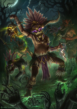 No ale odbijam od tematu. Wszystkie prace Daiv'a są świetne, ale najbardziej podoba mi się Witch Doctor. Wystające łapy (umiejętność Grasp of the Dead), pies zombie, lalka voodoo - te klimaty lubię . Do tego po prawej demon atakowany przez innego psiaka, po prostu wypas.