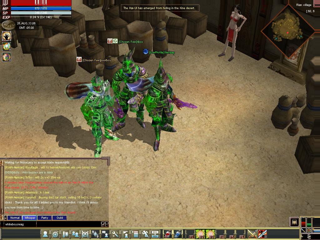 Witam. Zapraszam do zapoznania się z stara Thangiem Online, obecnie już thang USA. Gra podobna jest do MU, lecz posiada lepsza grafikę i klimat. W grze nie ma żadnych zje****** misji, ino mamy rozwijać swoją postać zdobywając dla niej lepszy ekwipunek Zbroje można robić w fajny sposób z różnych pierdół do +12 a broń do +11. Przedmioty na roznym polepszeniu świeca inaczej przeto w 1s rozpoznamy kto jaki ma set Czarwm można wbić poziomy do 9 i czar w każdej chwili możemy sprzedać, kupić, wymienić lub pożyczyć dla znajomego