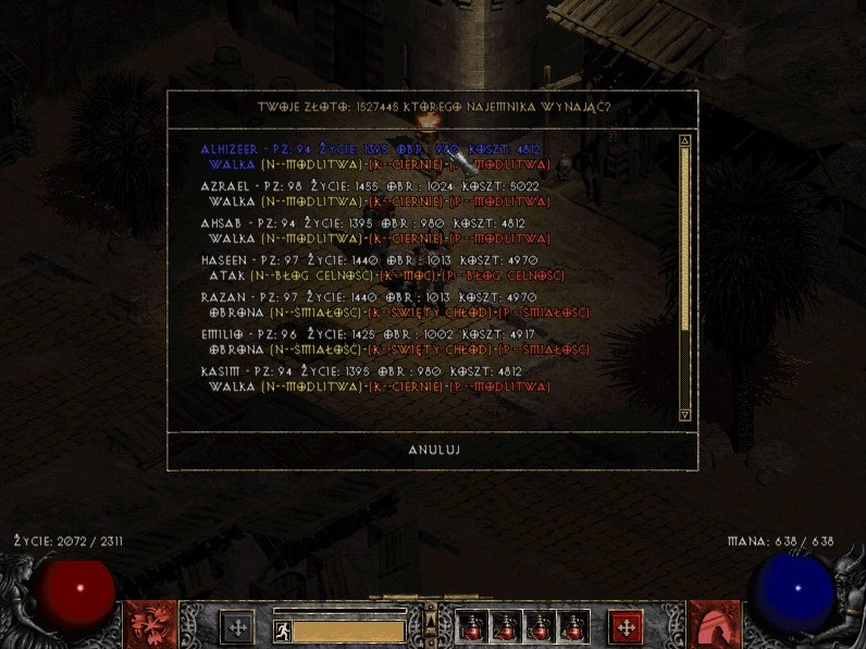 - Przy najmowaniu w akcie 2 widać opis jaką aurę dostanie dany najemnik.