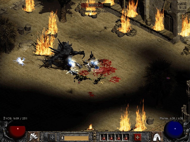 Lords of Sanctuary ma być bliżej Diablo 2. Bez zmiany fabuły i zbytnich zmian świata i rozgrywki ale ma mieć dodane nowe miejsca z potworami i bosami ze świata Sanktuarium czyli takie co pojawiły się w Diablo 1 i w Diablo 3 i w książkach no i w informacjach na necie o tym świecie opisujących demony itp. Obecnie w tej wersji pierwszej jest dodane coś do aktu 1. Tristram jest z wyglądem jak w D1 i mobki związane z D1 więc może to się kojarzyć z BtH ale nie jest to to samo. Skeleton King, Butcher i Adria pojawili się także w D3. W przyszłości pojawią się w LoS takie potwory jak Azmodan, Belial, Kabraxis, Assur, Xazax, Rakanoth, Astrogha itd itd. Pozycji trochę jest. Każdy powinien być w nowej lokacji i wszystkie lokacje porozrzucane będą po wszystkich aktach. Jak pisałem ma to być rozszerzenie D2 jak dodatek żeby urozmaicić grę. Oczywiście chętnie dowiem się co można by dodać/zmienić lub co nie potrzebnie zostało dodane/zmienione tak żeby każdemu się dobrze grało. Jeszcze mało jest w modzie więc są screeny. Jak będzie z 5 aktów to można i film nagrać czemu nie.