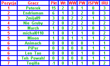 - Punktacja z TvT łączy się z punktacją turnieji 1vs1
