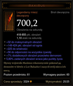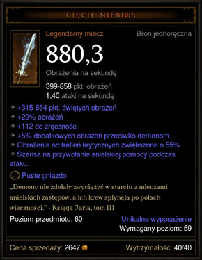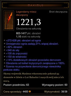 Miecz ten daje szansę na przywołanie demona, który będzie walczył u boku bohatera. Przygotowaliśmy też niespodziankę. Demon posiada afiks ogniste łańcuchy, a swoim łańcuchem przykuty jest do postaci gracza. Hahaha!